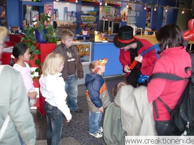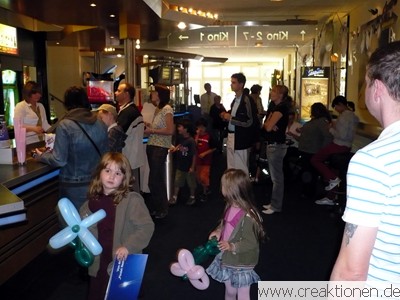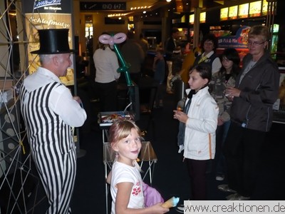 zur Veranstaltung: Kinderfest & Premierenparty zum Kinostart von Wall-E für die CineStar Kinos in Zwickau und Crimmitschau im September 2008. Von uns sind die Banner für die CineKidz Aktionen, die Ideen für Bastel- und Malaktionen (die Kinder konnten u.a. Masken vom Filmhelden Wall E basteln) und wir hatten Ballonmodellierer im Einsatz. |