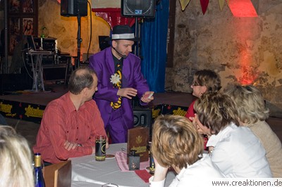 zur Veranstaltung: Ausflugs- und Erlebnisparty für Globus - Alpha Tecc, Januar 2009 Im Januar 2009 haben wir für die Globus Fachmärkte Alpha Tecc aus Markkleeberg und Zwickau diesen gemeinsamen Ausflug und Mitarbeiterparty ausgeführt. Wir haben die komplette Gesamtplanung, von der "Findung" des passenden Veranstaltungsortes bis zur Heimfahrt umgesetzt. Sämtliche Leistungsbereiche wurden über unser Büro abgewickelt. Wir haben die Mitarbeiter & Mitarbeiterinnen mit Bussen an Ihren Fachmärkten abgeholt und in die Altenburger Brauerei bringen lassen. Nach einem kurzen "Startimbiß" gab es natürlich brauereiführung und dann gings los zur Party (all inclusive!) in der Tenne. Dort war ein tolles Warm-/Kaltbüfett vorbereitet und mehr oder weiniger ernst hat unser spezieller Security Mann (Schauspieler Stefan Uhlig) alles unter Kontrolle gehabt... Er sorgte am Abend noch für einige Lachsalven incl. seiner Bühnenshow. Im Programm waren außerdem Moderation, Musik und Animationsspiele mit der Andythek, eine für den abend erfundene Band und eine der Solo-Magiershows mit Julian.. |