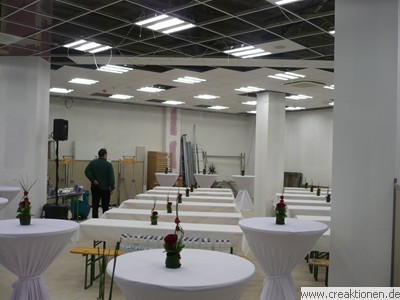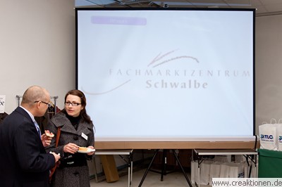 zur Veranstaltung: November 2009 haben wir gemeinsam mit der Fa. Werbedruck Kaden die Gesamtplanung und Umsetzung einer VIP-Veranstaltung zur Eröffnung des Fachmarktzentrums Schwalbe Galerie in Werdau realisiert. Durch uns selbst wurden die Aufgabengruppen Dekoration, Bühne (Bühnenhintergrund jedoch nicht von uns), Veranstaltungstechnik, Musik/Moderation, Videoprojektion, Programm und Veranstaltungsbetreuung ausgeführt. Selbst mobile Garderoben haben wir gestellt und noch sichtbare Baubereiche mit Paravants kaschiert. |