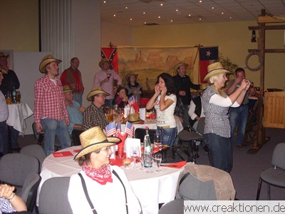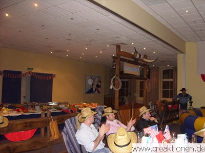 zur Veranstaltung: Januar 2010 haben wir für Siemens PLMS (Industry Software) die Gesamtplanung und Umsetzung einer VIP-Themenveranstaltung im Centerhotel Burgstädt realisiert. Durch uns wurden die Aufgabengruppen Dekoration, Veranstaltungstechnik, Musik/Moderation, Programm / Unterhaltung und Veranstaltungsbetreuung ausgeführt. Wir verwandelten den Saal mit entsprechenden Dekorationen in einen Saloon um, hatten Bull riding, Line Dance und natürlich die passende Musik und Westernspiele im Programm. |
