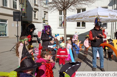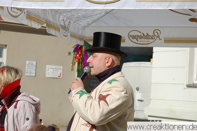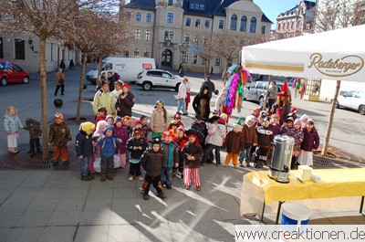 zur Veranstaltung: Kinderfasching auf dem Crimmitschauer Marktplatz zum Faschingsdienstag im März 2011. Die Veranstaltung steht unter Trägerschaft der Werbegemeinschaft Crimmitschau und geht auf unseren Vorschlag zurück, da über Jahre zunehmend kostümierte Kinder die Innenstadt besuchten (Crimmitschau ist sonst keine Faschingshochburg). Sie wird alljährlich "im Team" durchgeführt, von uns kam hier die Moderation, Musik und technische Umsetzung. |